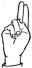 На ћирилици написано НИКОДИЈЕ ЛАПЧЕВИЋ састоји се из 16 слова [?]. Исписано ћириличном једноручном азбуком за глувонеме: